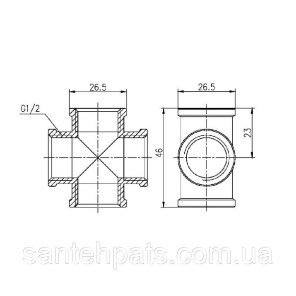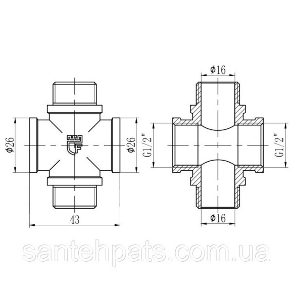 Хрестовина латунна 3/4" внутрішня різьба