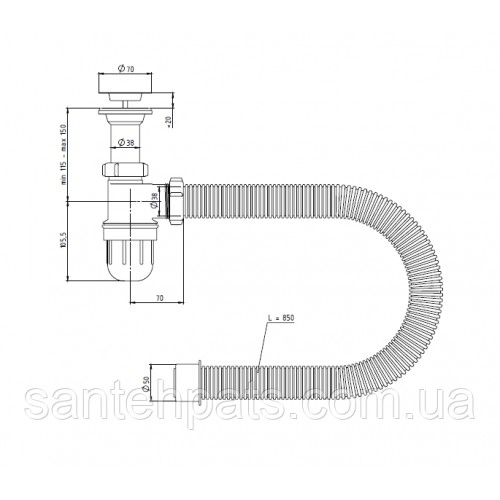 Сифон мийка метал економ