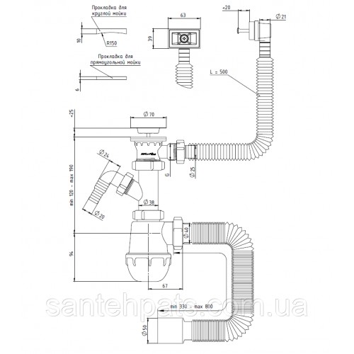 Назначение сифона — Для кухонной мойки|Для стиральной машины|Для посудомоечной машины